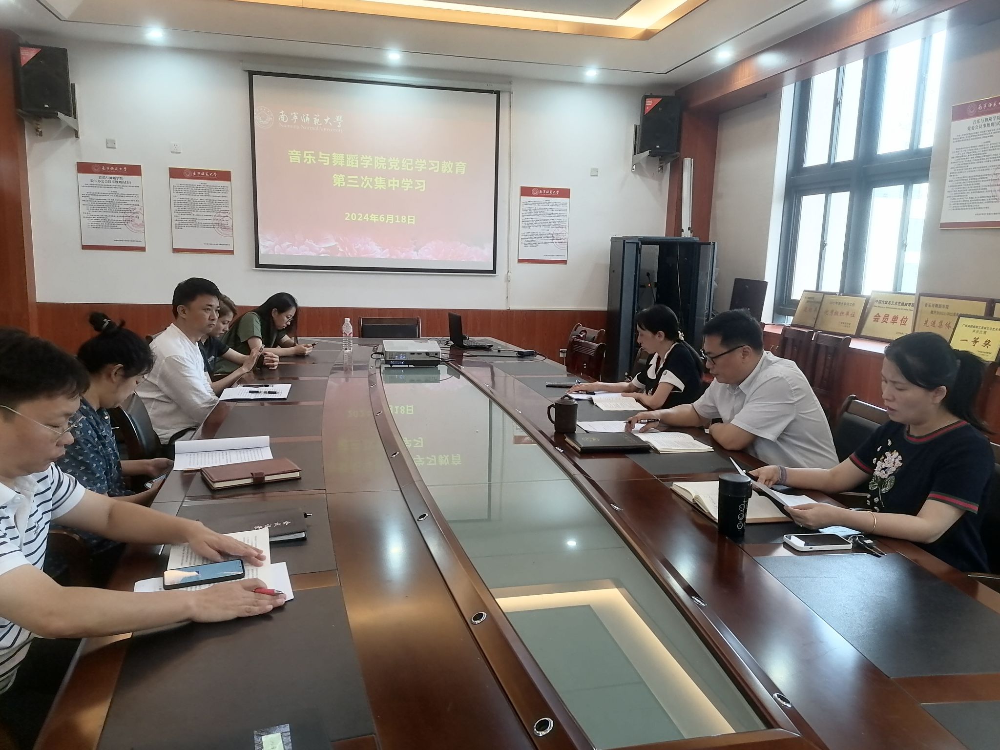 6月18日下午,音乐与舞蹈学院党委领导班子在音舞楼A3015会议室举行党纪学习教育第三次集中学习,专题学习《中国共产党纪律处分条例》第二编“分则”。学院党委委员参加集中学习。学院党委书记陈宇主持学习。