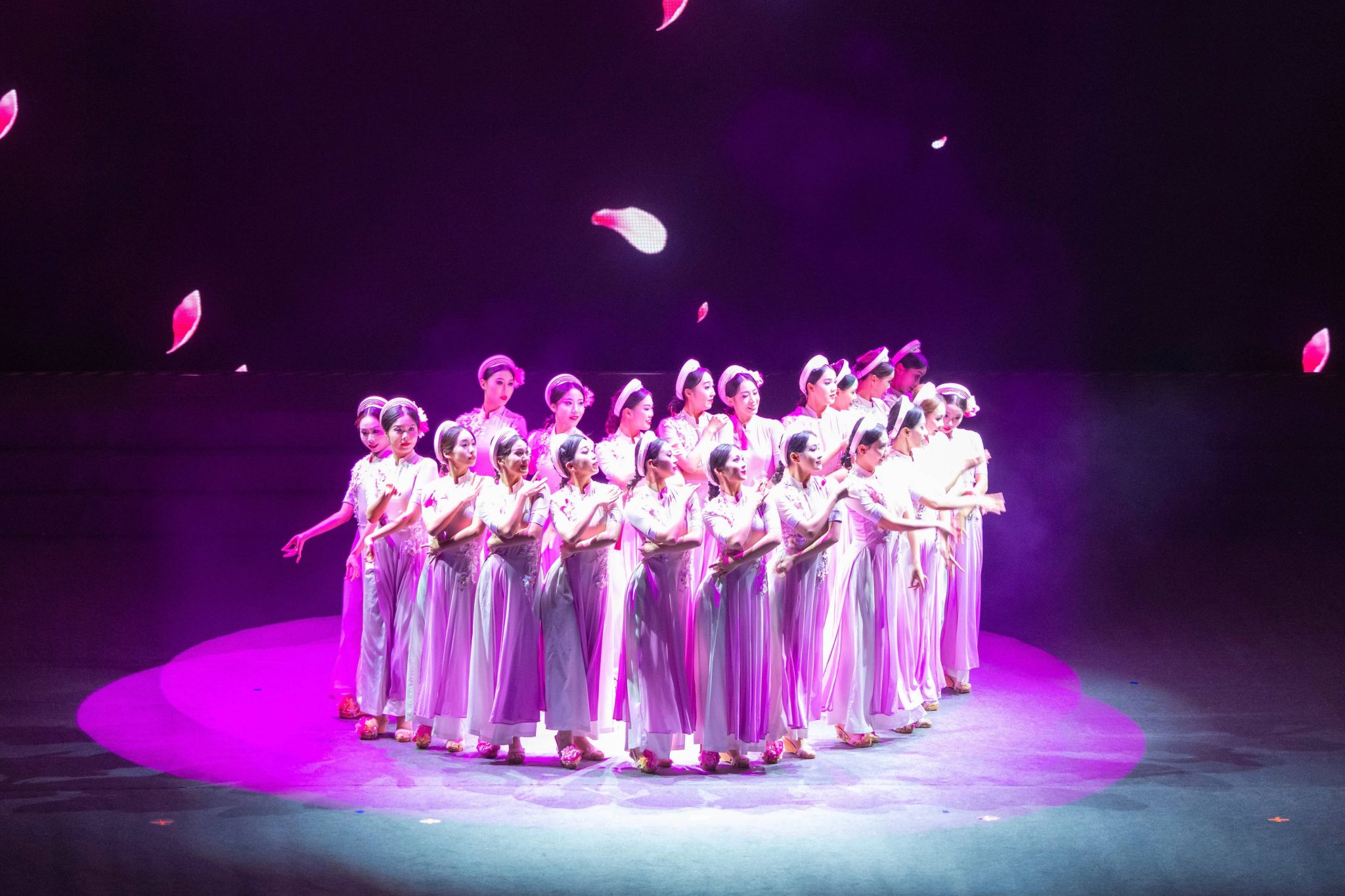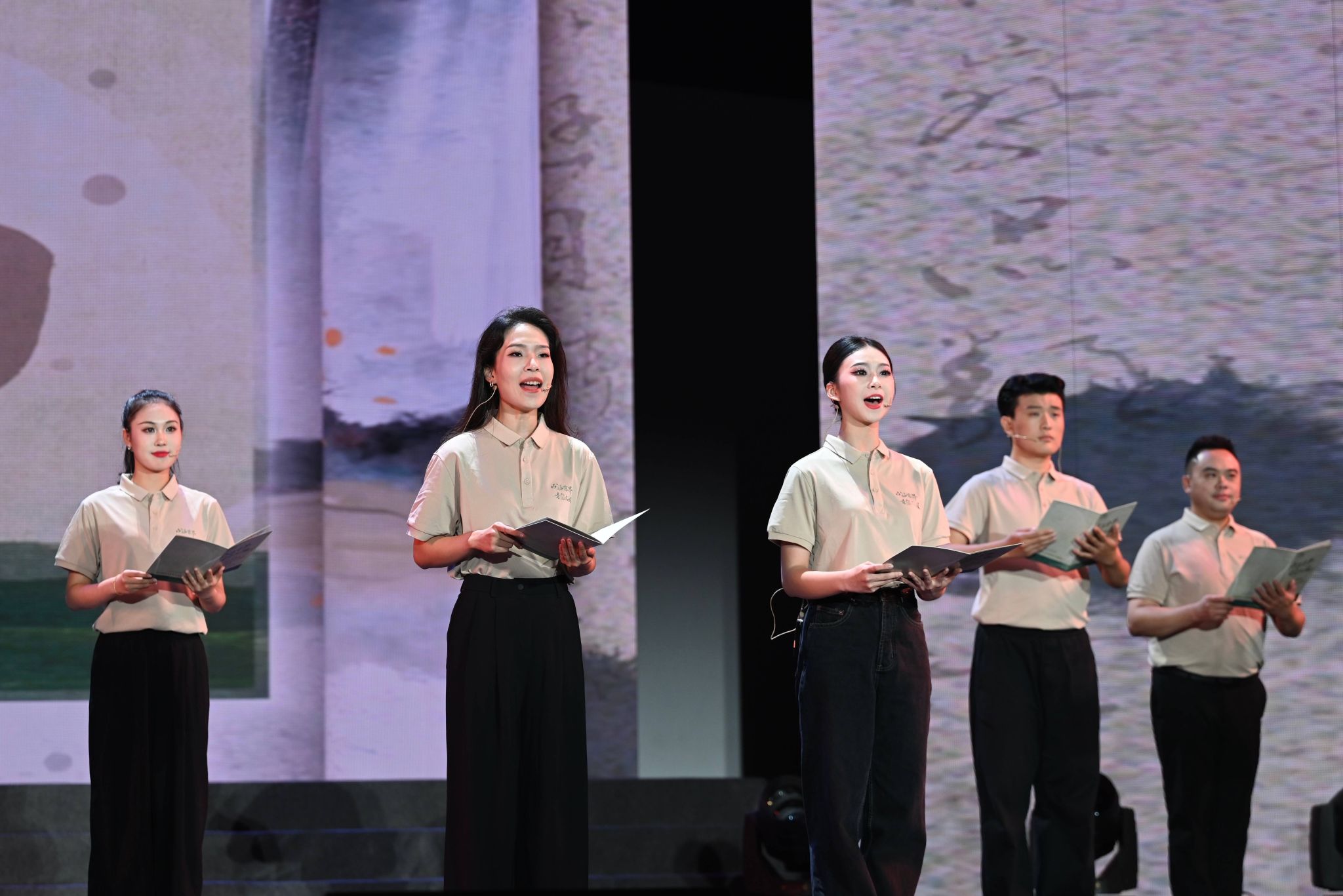 我院音乐与舞蹈学院王亚楠老师、文祎洋同学与组团高校师生同台朗诵的致敬词《山海之约》,招霞老师与六所高校教师共同演唱的《我们的故事》,王韦、刘媛、王亚楠老师共同编创,21名同学演出的《对花屐》,舒春秀老师与六所高校师生共同演绎的歌伴舞《我和我的祖国》在大思政课舞台上依次演出,展现出南师师生自强不息、追求卓越的良好精神风貌和在推进中国式现代化建设中挺膺担当的奋斗精神。