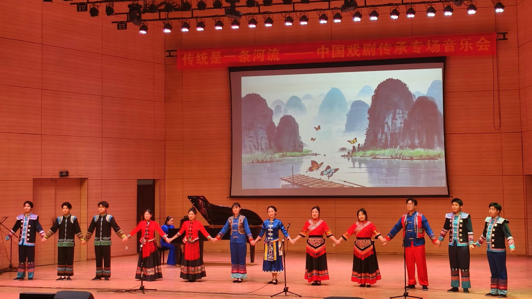 2024年12月30日晚,音乐与舞蹈学院成功举办首届“传统是一条河流”——中国戏剧传承专场音乐会。南宁市民族文化艺术研究院、一级演员余韧,音乐与舞蹈学院有关领导、老师出席了音乐会观看演出。