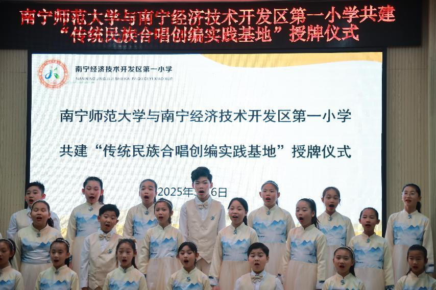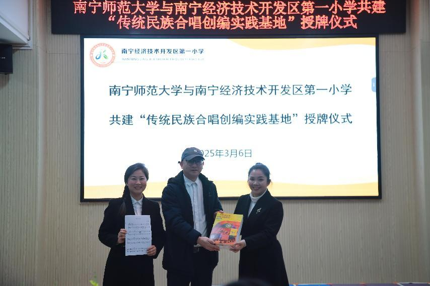 春风化雨润万物,文化传承启新程。2025年3月6日下午,betway必威西汉姆联官网传统民谣创编与实训中心与南宁经济技术开发区第一小学共建“传统民族合唱创编实践基地”授牌仪式在经开一小党建活动室隆重举行。我校音乐与舞蹈学院党委书记陈宇、经济技术开发区第一小学校长蓝瑞美、betway必威西汉姆联官网传统民谣创编与创新实训中心主任曹昆教授等师生代表齐聚一堂,共同见证这一校地合作美育实践的重要时刻。