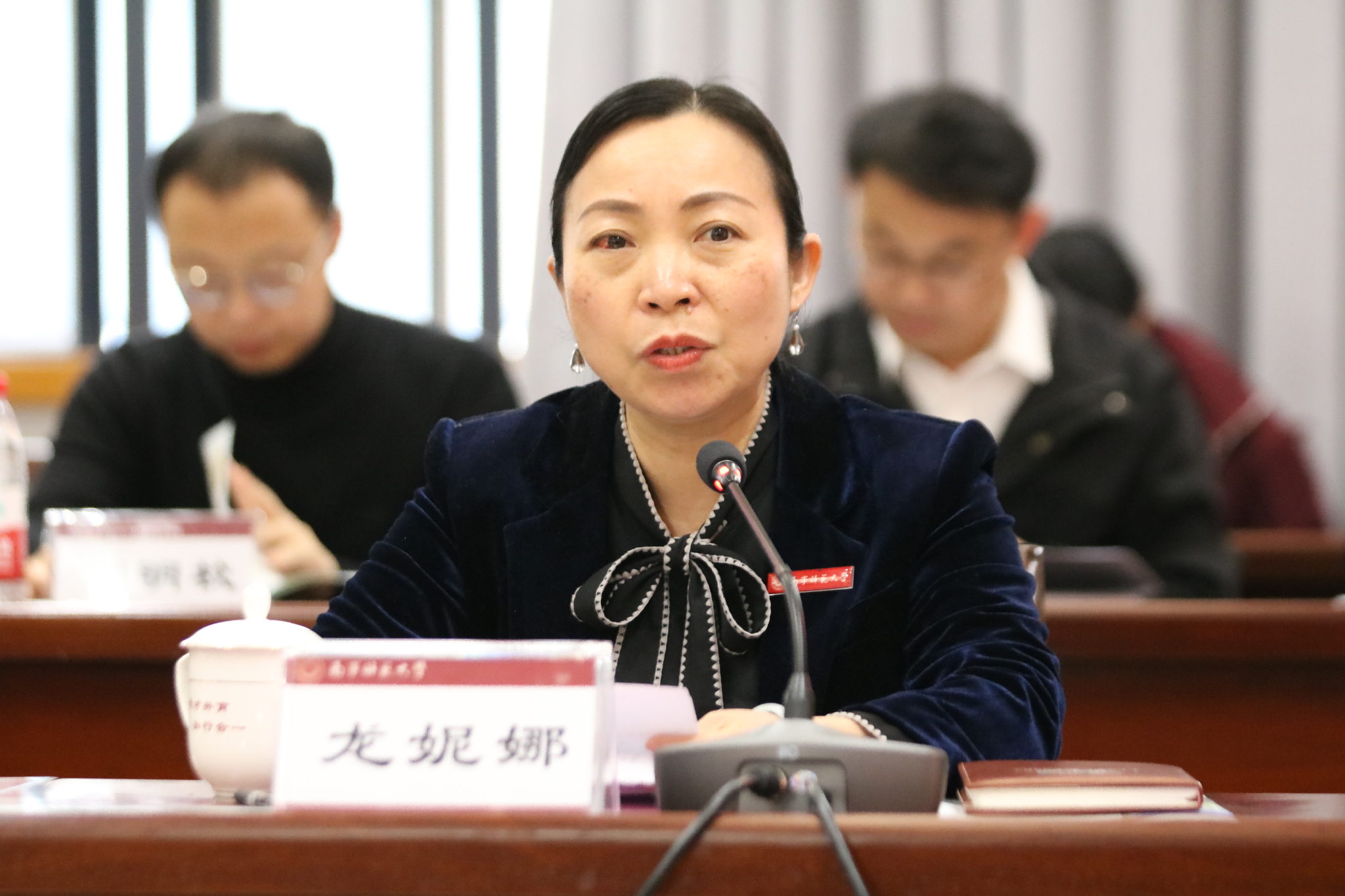 龙妮娜代表学校向参会的领导、来宾的到来表示欢迎和感谢。她表示,在新时代背景下,希望与会各方用好新时代音乐教育教材实践基地平台,深入合作,淬炼新时代精品教材,筑牢基础音乐教育基石,打造音乐教育专业全新生态,为我国师范教育事业和地方基础教育发展做出新的更大贡献。