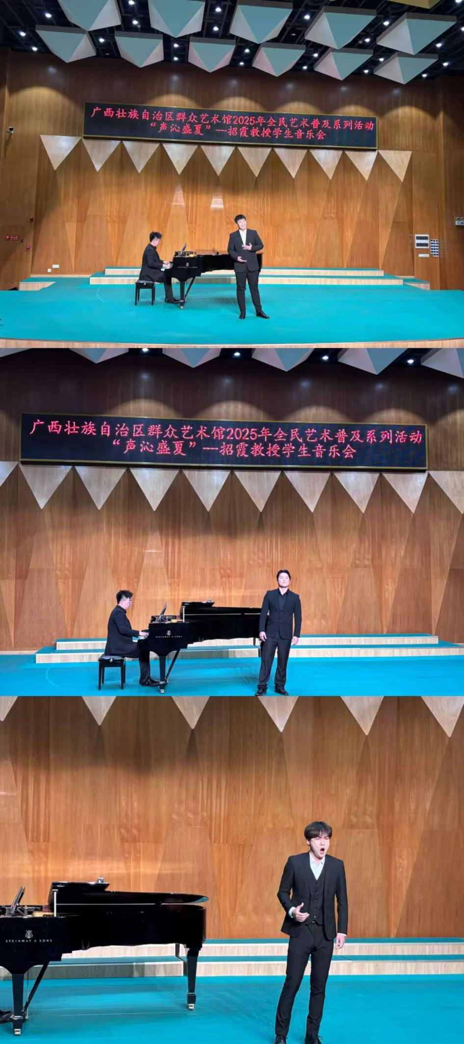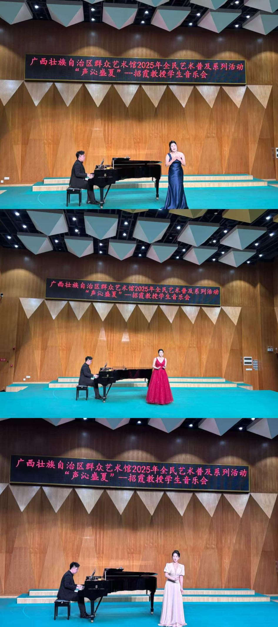 2025年6月11日晚,“声沁盛夏”——betway必威西汉姆联官网音乐与舞蹈学院招霞教授学生音乐会在广西壮族自治区群众艺术馆精彩上演。这是2025年广西壮族自治区群众艺术馆全民艺术普及系列活动的重磅演出之一。
