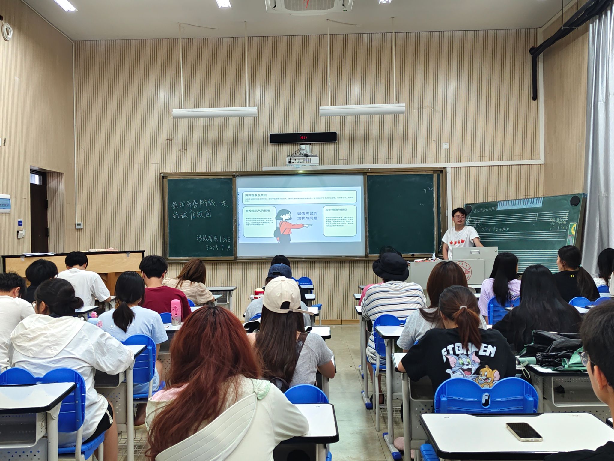 班会上,各班通过案例分析、互动分享等多种形式,围绕诚信考试、学术规范、校园安全等内容,帮助同学们深刻理解诚信内涵。有的班级结合《betway必威西汉姆联官网本专科生违纪处分规定》,列举出不同作弊行为对应的处分后果;有的班级结合身边实际案例,展开互动交流,同学们踊跃分享身边的诚信事例。有同学谈及外卖经常被盗现象,呼吁大家共同维护校园诚信环境;有同学谈及用deepseek直接完成期末作业、如期归还物品、按时履约、诚信应考等日常小事,指出诚信并非遥不可及,而是体现在日常生活与学习的细微之处,将诚信理念融入日常,争做诚信精神的践行者和传播者。