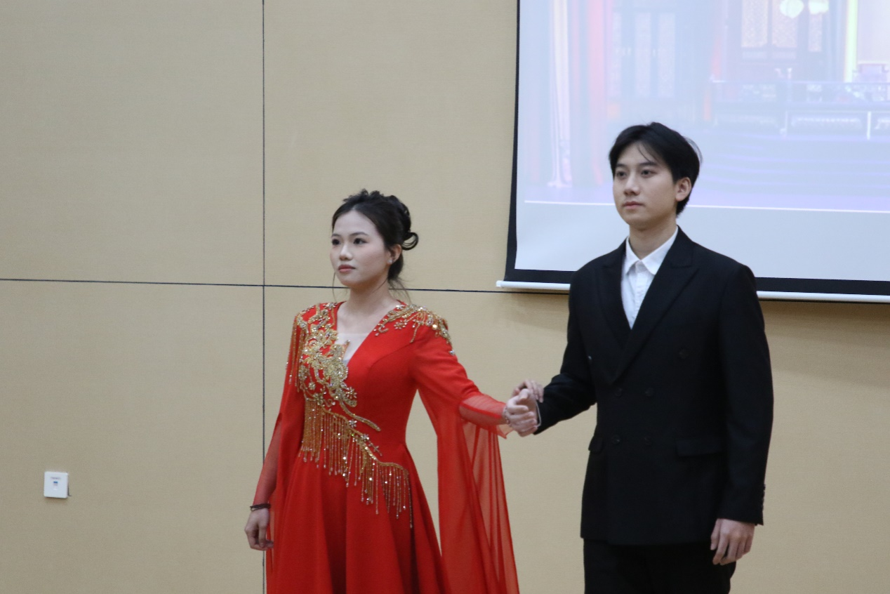 讲唱会由音乐与舞蹈学院音乐学系系主任李曼霞博士担任主持。在首章“专家发言”中,声乐系招霞主任、教学教研部马松青副主任、音乐学系李曼霞主任分别就“戏曲音乐与声乐表演实践”“戏曲唱腔与字调关系探析”以及“美育视域下高校地方戏曲传习课程建设与研究”等专题进行了主旨发言,从理论与实践角度探讨了戏曲艺术的传承与发展。第二篇章“青年新语”环节,广西艺术基金2025年度艺术人才培训资助项目广西少数民族戏剧音乐演奏人才培训项目学员、我院2024级硕士研究生谢寒与2025级硕士研究生张紫艳,分享了传承传统文化研习收获与思考。最后一章“金声玉振”由betway必威西汉姆联官网戏剧团倾情呈现,桂剧、粤剧、壮剧、京剧等经典剧目轮番上演,精彩纷呈的表演赢得现场观众阵阵掌声。