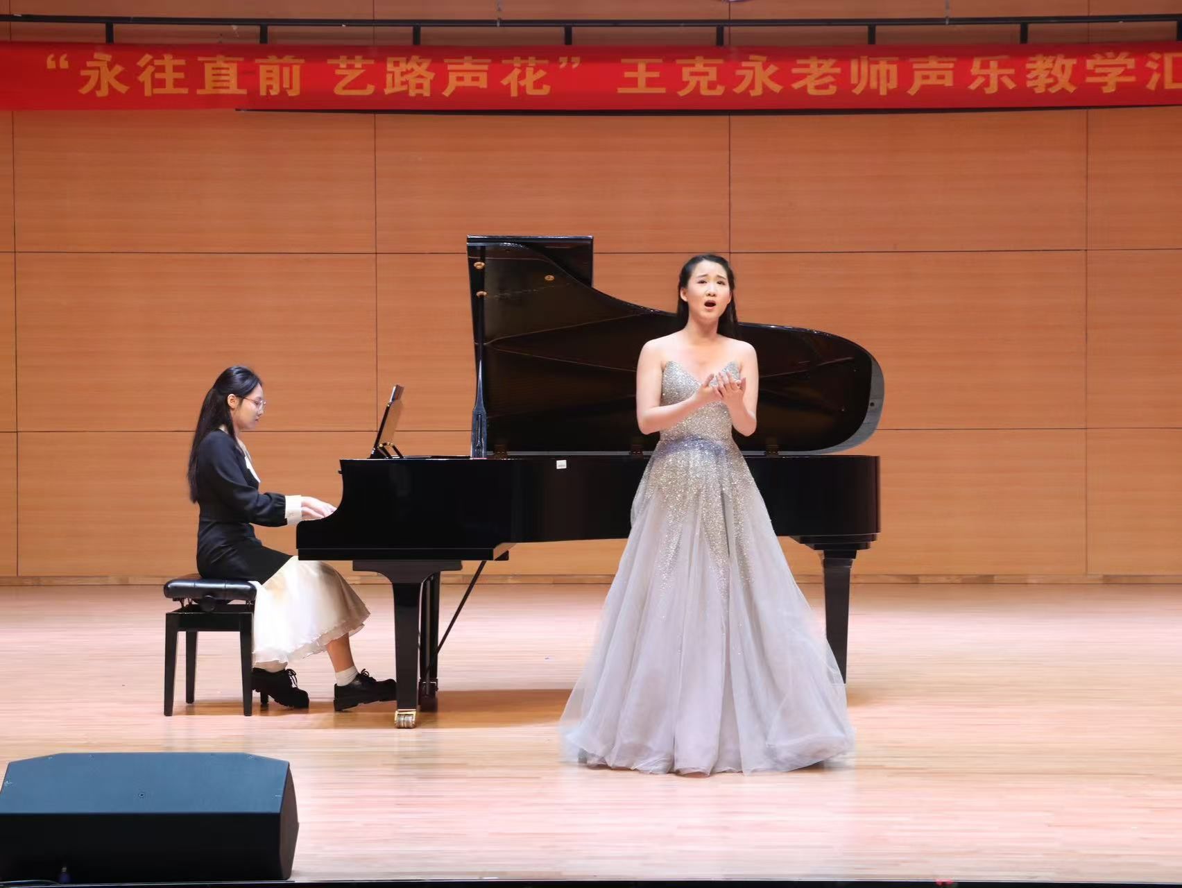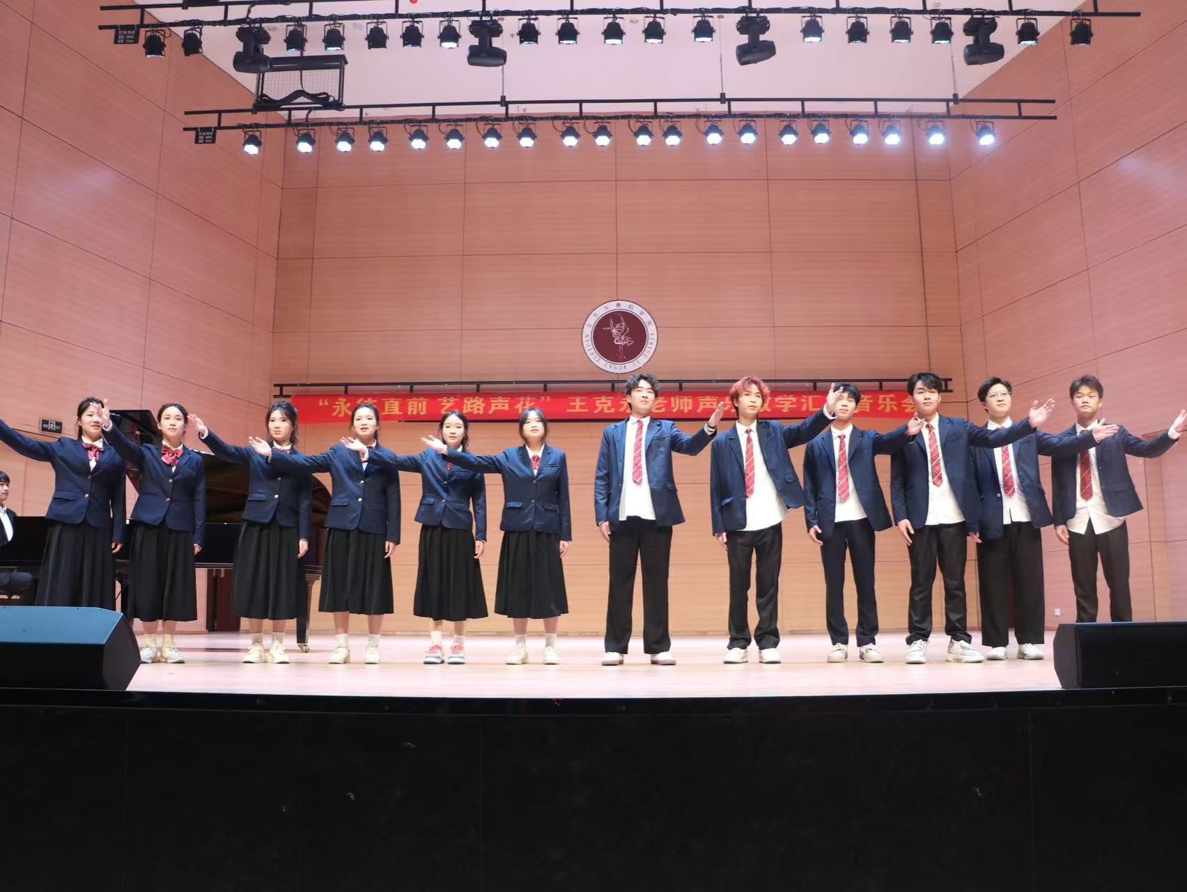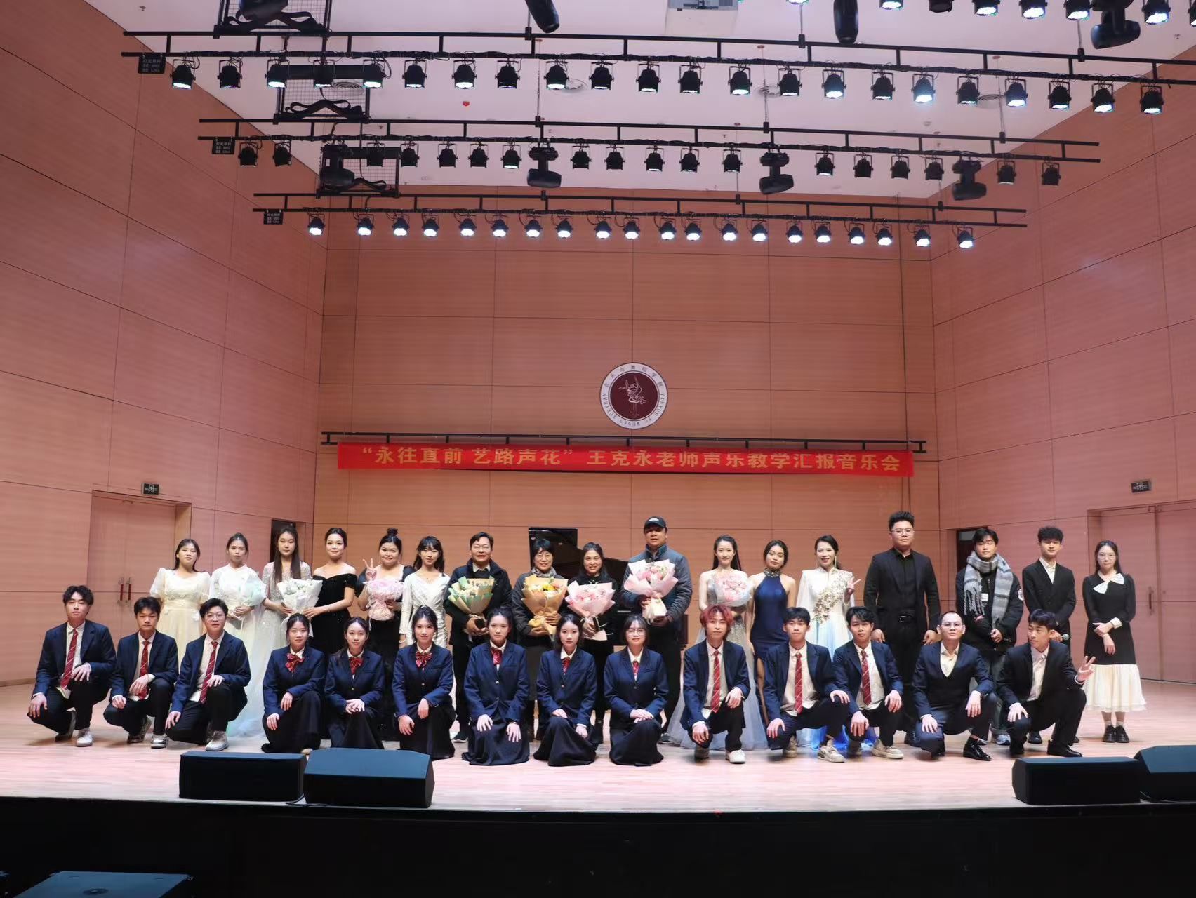 “永往直前 艺路声花” --王克永老师声乐教学音乐会,展示了音乐与舞蹈学院学子闪亮的舞台风采,体现了指导老师的优秀成果,突出表现了学院教学与实践的紧密结合。在王克永博士精心策划和悉心指导下,这一场视听盛宴最终得以呈现在观众面前,并且赢得了满堂喝彩。一首首声乐作品如泉水般涌现,它们或激昂澎湃,或婉转悠扬,将观众带入了独具韵味的音乐空间。舞台上经典与创新交织的旋律,不仅展现了国内外声乐艺术的博大精深,更见证了王克永博士师生在艺术探索道路上的坚韧与执着,让每一位参与者深刻感受到了来自“家”的温暖与归属感。这场音乐会不仅是一场视听的音乐盛宴、思想的升华和精神的洗礼,更是对党的伟大领导的热情讴歌,对祖国光辉征程的深情礼赞。