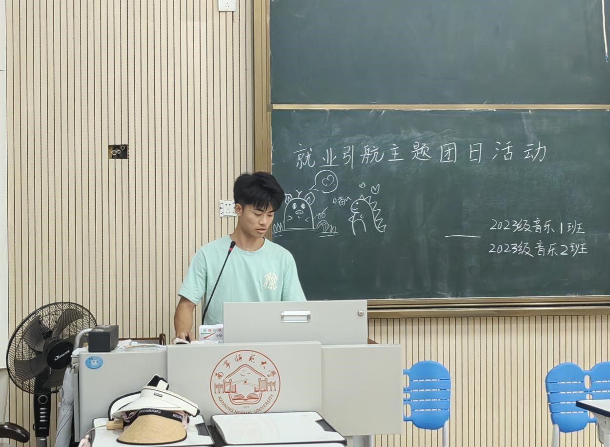 6月13日,我院2023级音乐一班、二班团支部于在音舞楼A1001教室顺利召开了“就业引航”主题团日活动,本次主题团日活动由学院就业引航员黄美源主持。