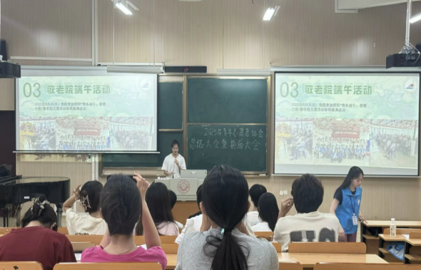 大会回顾了近期开展的两项公益活动:分别于5月7日-29日、5月31日举办了旧物回收活动和敬老院关爱活动。通过食堂门口线下摆摊与线上预约回收相结合的方式,吸引大量毕业生参与。我院青协志愿者与学院学生一同前往敬老院,为老人们送上端午慰问品和互动。会上,韦舒丽同学作为活动组织者代表,分享了独立策划和执行敬老院关爱活动的经验与心得。这两项活动为我院青协志愿者们提供了宝贵的实践平台,不仅使他们受益匪浅,也为学院未来的志愿工作奠定了坚实的经验基础。