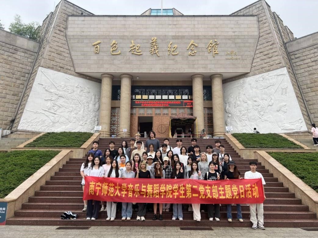 2024年3月27日至31日,音乐与舞蹈学院学生第二党支部的同志们来到广西百色起义纪念馆开展主题党日活动,此次活动由学院黄妙秋院长、王韦副院长等8名老师带队。活动以重温百色起义红色路线为主题,感受了红歌文化与壮歌文化,将党建同专业特色相结合。
